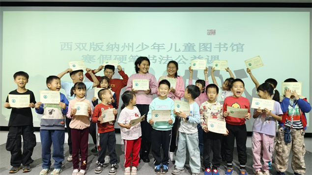 2026年1月31日下午,西双版纳州少年儿童图书馆免费开放服务寒假硬笔书法公益课顺利结业。本次课程为期5天(1月27日至31日),30位小朋友在戴秋川、李存艳两位老师的悉心指导下,解锁“写好中国字”新技能,为寒假生活添满墨香与欢乐。