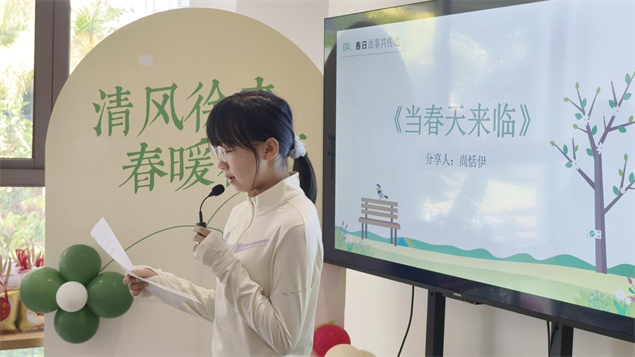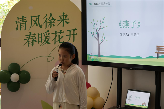 活动现场暖意融融,主持人一句“欢迎来自全国各地的小客人”瞬间拉近距离。通过趣味PPT和动画短片,“东风解冻”“蛰虫始振”“鱼陟负冰”的立春三候被娓娓道来,“咬春”“打春牛”等传统习俗更勾起了各地小朋友的好奇心。来自河北的尚恬伊小朋友分享《当春天来临》,字里行间满是北方春日的清新;内蒙古呼伦贝尔的王茗伊小朋友朗读《燕子》,软糯语调中带着江南水乡的灵动,仿佛让燕子掠过雨林上空。孩子们踊跃分享家乡的春日景象与旅途见闻,北京的胡同春色、四川的梯田春景、广东的花市热闹……各地风情与版纳雨林风光碰撞,让传统文化在跨地域交流中焕发别样生机。