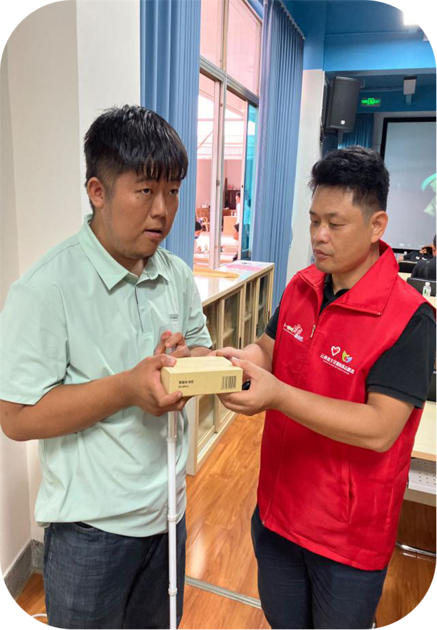 活动现场西双版纳州盲人协会还为50名视障人士发放了大米、食用油及日常用品,让大家切实感受到来自社会各界的关怀。同时,州图书馆还集中展示了“盲人智能听书机”、盲文图书、有声读物等无障碍文化资源,工作人员现场演示听书机操作方法、介绍盲文图书借阅流程,免费办理借书证10个,帮助视障群体更好地获取文化服务,助力他们融入社会文化生活。