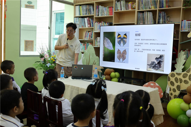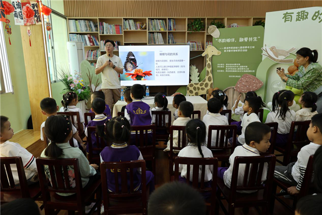 《有趣的植物》主题分享环节趣味十足。自然科普老师张斐用生动的语言,揭秘植物与蝴蝶的“亲密关系”——区分马缨丹、五星花等蜜源植物,以及马利筋、西番莲等寄主植物的不同作用;通过“植物让牛健壮”“我们的衣食住行离不开植物”等趣味知识点,让孩子们直观感受植物的重要性。家委高菲菲还现场科普科学放生知识,传递环保理念。