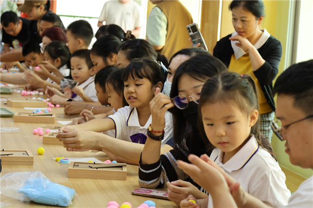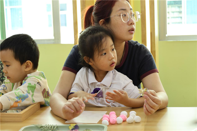 亲子手工创作环节将活动推向高潮。家长与孩子默契配合,用彩色粘土搭配干花,精心制作植物主题手工作品,再装入专属相框,定格温馨创作瞬间。
