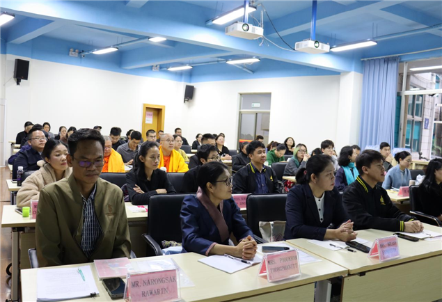 开班仪式上,云南省图书馆、西双版纳州文旅局及复旦大学相关领导,通过现场和线上先后致辞,杨玉良院士通过书面致辞寄语参训人员传承文化使命。随后举行的揭牌仪式,构建起“收藏-修复-传承”的完整链条:傣文贝叶经文献馆为文献提供专业化收藏展示平台,贝叶经修复室成为技术创新核心阵地,而培训班则承担起人才培育的重要职责。当天,云南大学教授周娅、云南省少数民族古籍整理出版规划办公室副译审依旺的,分别以“贝叶文献概念意涵、历史源流与文化价值”和“贝叶经保护研究的宏观视野与跨语际研究实践——傣文贝叶经和缅文贝叶经为例”为题开展主旨讲座,为培训拉开学术序幕。