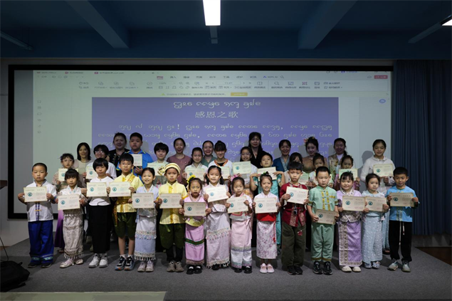 2月7日下午,培训班举行了温馨的结业典礼,为期五天的傣文学习圆满收官。来自北京的小学员李梓墨小朋友依依不舍地说:“老师,什么时候还上傣文课,我还想学傣文。”此次培训生动有趣、意义深远,孩子们在快乐中学习傣文、了解民族文化,增强了民族自豪感与文化自信,也让优秀的傣族传统文化在少年儿童心中生根发芽、闪闪发光。