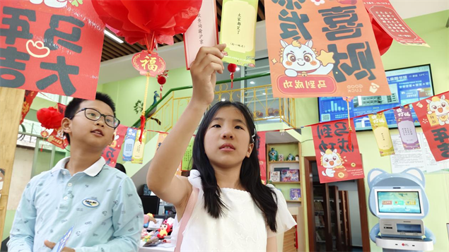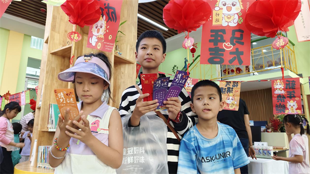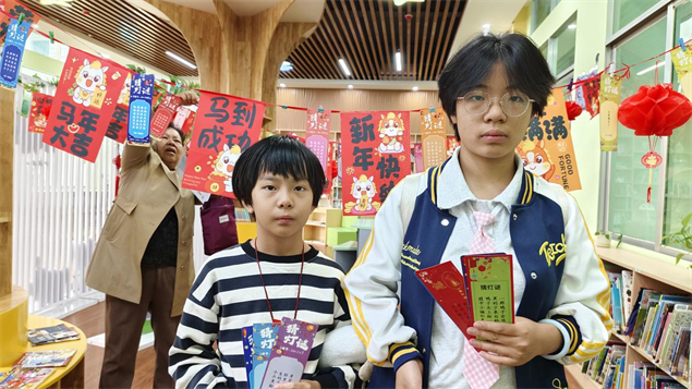 小朋友们兴致满满,有的独自认真思考,有的和小伙伴一起讨论,还有的拉着爸爸妈妈共同解谜。大家你一言我一语,现场气氛热闹又温馨。猜出答案的小朋友,开心地跑到兑奖区核对,答对就能领到文具、文创、益智玩具等精美小礼物,拿到奖品的孩子们脸上都洋溢着自豪的笑容。