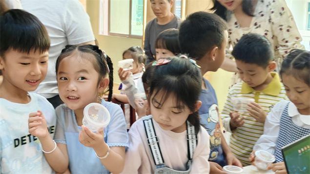 最精彩的环节是《小螳螂大发现》科普课。张斐老师带来了可爱的螳螂,孩子们围坐一圈,近距离观察这些神奇的小生灵。老师用浅显的语言介绍螳螂的外形与种类,告诉大家螳螂和蝴蝶、蚂蚁同属昆虫大家庭。有些小朋友起初有些胆怯,在老师鼓励下,大家勇敢地轻轻触摸,真切感受大自然的奇妙。