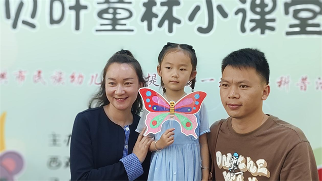 随后进入欢乐的亲子手工时光,大家一同制作创意立体蝴蝶扇。孩子们手持彩笔,为扇面涂上缤纷色彩,家长在旁细心协助,一把把灵动美丽的蝴蝶扇陆续诞生,现场满是欢声笑语。